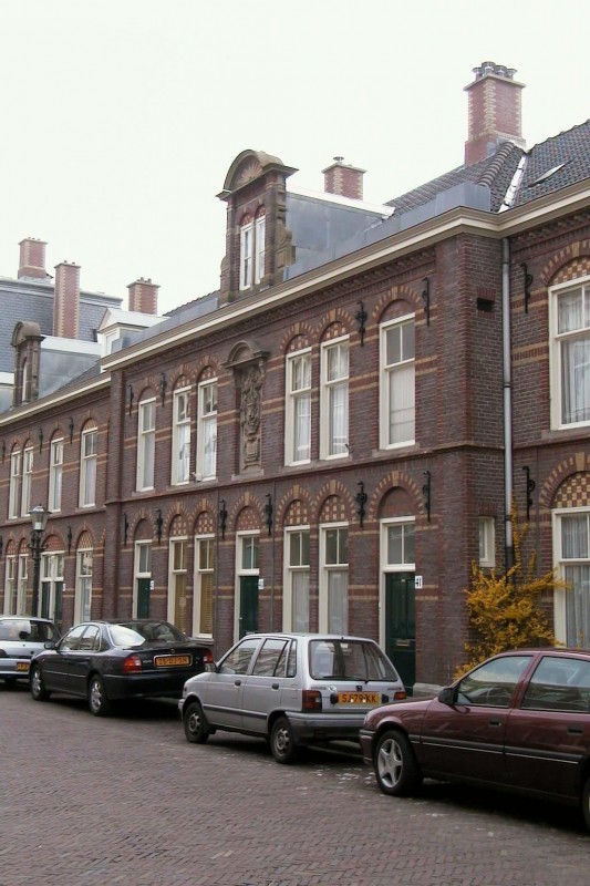De huizenblokken bestaande uit parterre en verdieping, hebben gekoppelde deuren en geelrode bakstenen boogvelden boven vensters en deuren. Ritmische afwisseling van uitstekende en terugliggende partijen van de blokken die als één geheel zijn opgevat. De middenrisalieten hebben een mansardedak met steekkap boven een extra verdieping, de rest een zadeldak met dakkapellen die op renaissancistische wijze met voluten en segmentfrontons zijn uitgevoerd. Eenvoudige, doch harmonische baksteenarchitectuur.