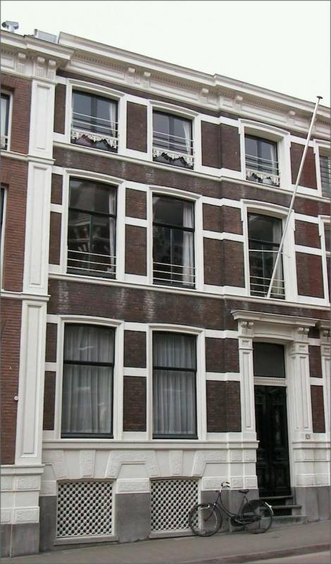 Op de eerste en tweede bouwlaag bevinden zich schuifvensters en op de derde stolpramen, alle voorzien van een geprofileerde, gepleisterde omlijsting. De vensters op de tweede bouwlaag bezitten T-kozijnen. De gekoppelde souterrainvensters zijn voorzien van gietijzeren roosters. Voor de stolpramen zijn gietijzeren raamhekjes geplaatst.