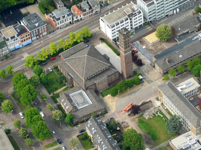 RK kerk OLV van Goede Raad uit 1953-1955 naar ontwerp van J. van der Laan in een traditionele op de byzantijnse kerkenbouw geïnspireerde vormgeving.