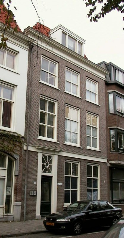 Pand met verdieping en zolderverdieping. Drie traveeën brede lijstgevel, eerste kwart l9de eeuw. Deuromlijsting met pilasters, hoofdgestel en gietijzeren bovenlicht.