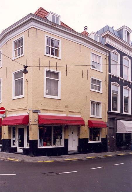 Pand op de hoek van de Denneweg en Kazernestraat uit de 1e helft van de 17e eeuw bestaande uit een voorhuis van drie bouwlagen en een achterhuis, waarvan een gevel aan de Denneweg is gesitueerd, bestaande uit begane grond en drie insteekverdiepingen. Zowel voor- als achterhuis worden gedekt door een schilddak met de nok evenwijdig aan de Kazernestraat. De later grijs gesausde bakstenen gevels hebben 17e eeuws metselwerk en mogelijk nog deels authentieke kozijnen. Geheel links aan de gevel van de Kazernestraat is een fraai gesmeed 17e eeuws muuranker. De sober geprofileerde kroonlijst dateert vermoedelijk uit het eind van de 18e eeuw. In de jaren twintig van deze eeuw is de houten winkelpui met glas- in lood bovenlichten en de deur in de stijl van de Amsterdamse School ingebracht.