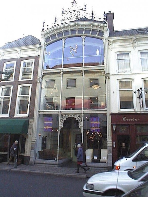 Winkelpand met glasgevel in art-nouveau stijl (1898), van architect J.W. Bosboom.