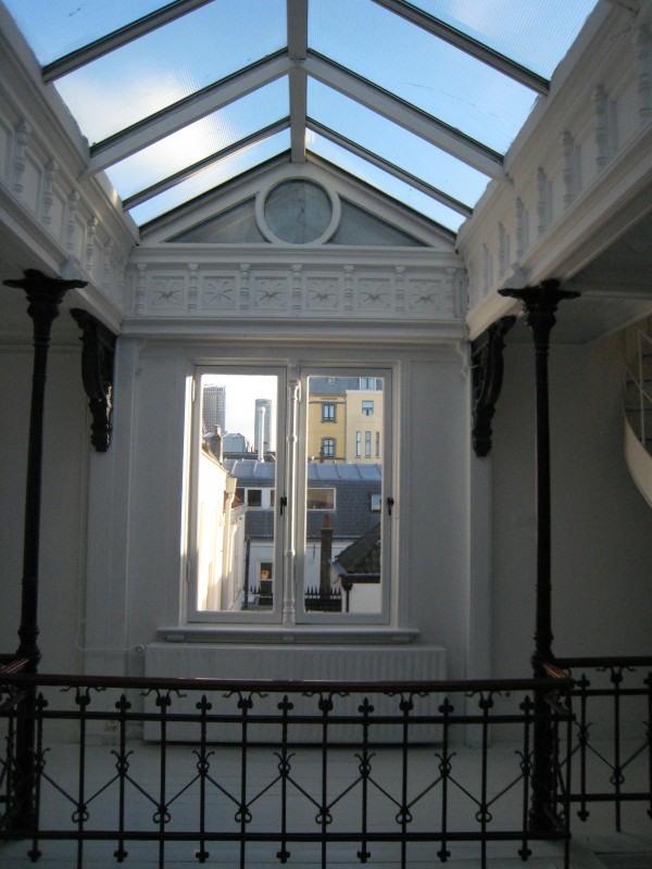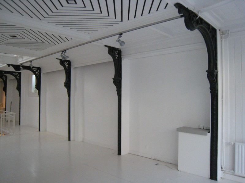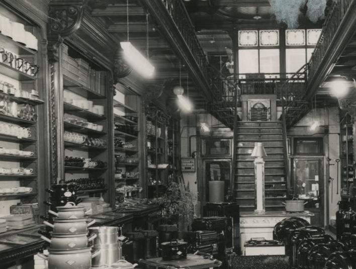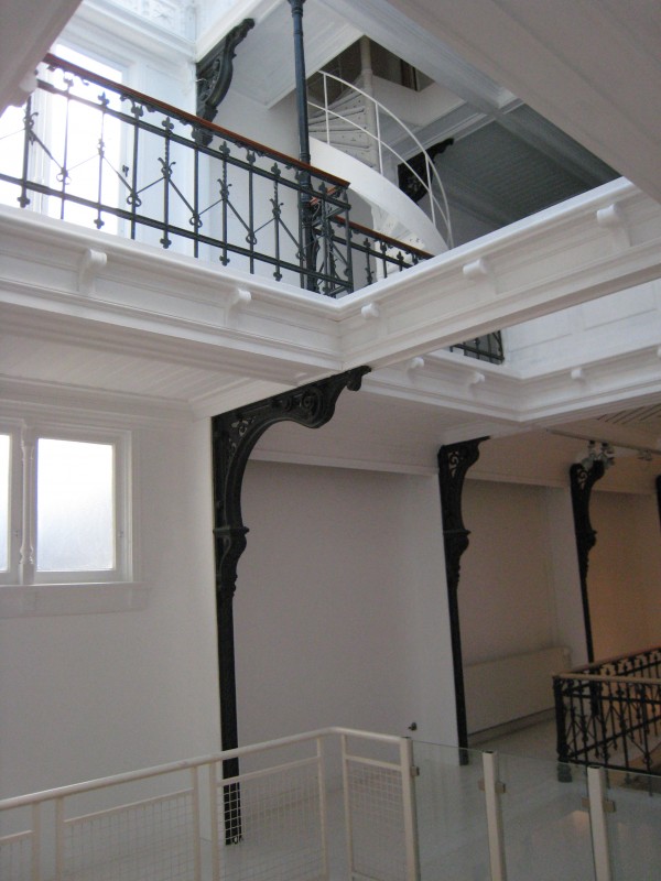 Net als de voorgevel was ook het interieur open en transparant. De toonzaal was bedoeld voor het etaleren van kachels, haarden en sanitaire artikelen, de producten van de ijzergieterij. Het was een hoge ruimte, een vide, met galerijen over twee verdiepingen. De begane grond en de verdiepingen waren ongedeeld en bezaten rijk geornamenteerde balustrades, trappen en kolommen. Het vele ijzer dat in het exterieur en het interieur is verwerkt, 45.000 kilo, is voor het merendeel door Beekman zelf vervaardigd.