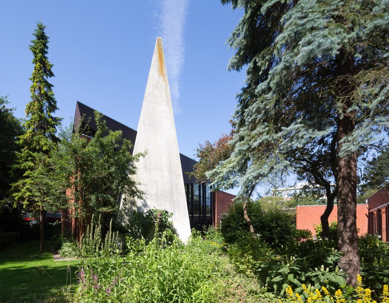 Voormalige Nederlands Hervormde Kruispuntkerk, ontworpen in 1965 en gebouwd in 1968-‘69 door architect K.J.  Nieukerk.