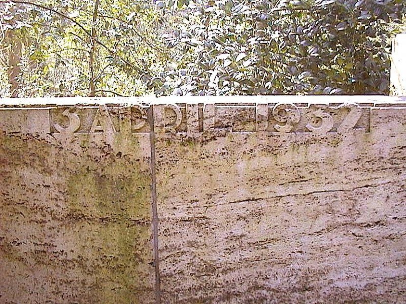 De in expressionistische stijl vormgegeven zitbank is gebouwd van Travertinsteen. De in L-vorm geplaatste zitbank van bron zen staven staan op een vloer belegd met Travertin van circa 7 meter lang en 4 meter breed, die aan de voorzijde wordt afgesloten door een laag muurtje en aan de achter- en zijkant door een hoge wand, waartegen de zitbank steunt.