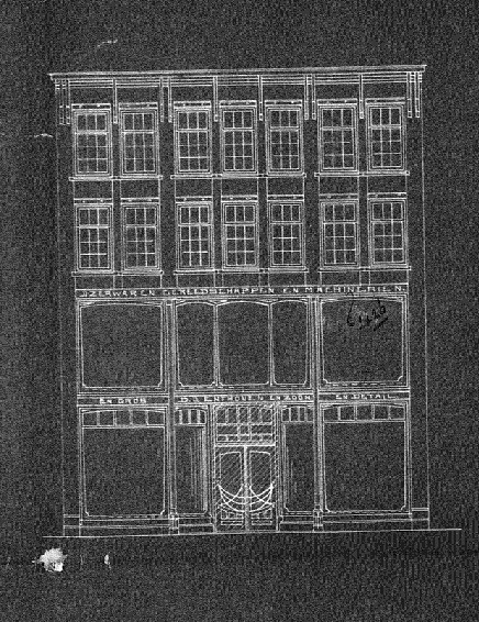 Winkelmagazijn met kantoren naar ontwerp uit 1902 in een klassieke vormentaal geïnspireerd op de architectuur van de Amerikaanse architect Louis Henry Sullivan. Het pand, bestaande uit vier bouwlagen onder plat dak, is gebouwd voor de NV 's-Gravenhaagse IJzermagazijnen, voorheen D.J. Enthoven en zoon.