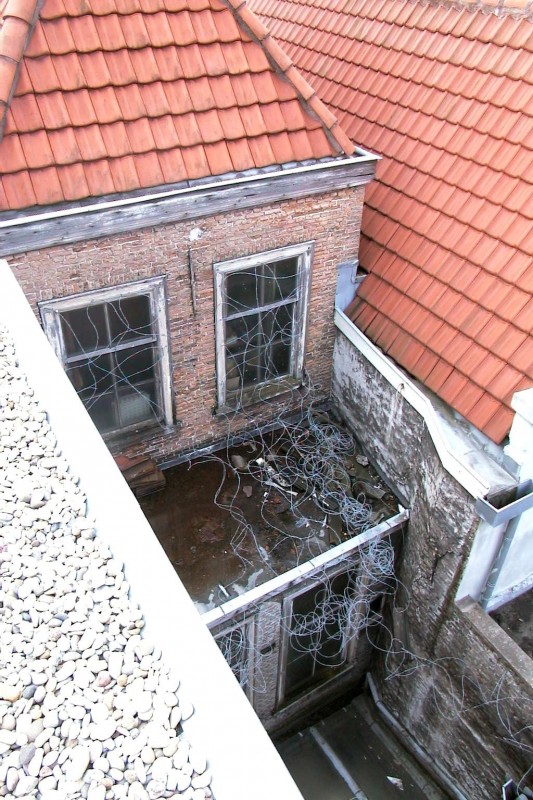 Bij een verbouwing van het pand in de 18de eeuw is een nieuwe kortere kap geplaatst over de voorste drie balkvakken. De onderste twee bouwlagen behielden de vier balkvakken, maar de tweede verdieping werd waarschijnlijk ingekort: de achtergevel van die verdieping staat op een gehandhaafde moerbalk. De achtergevel van het voorhuis bestaat daardoor nu uit twee delen, samenhangend met de inkorting van het voorhuis. De eerste verdieping bezit een gekalkte achtergevel met twee zesruitsschuifvensters (circa 1900). De terugspringende tweede verdieping bezit een bakstenen gevel waarin klezoortjes (kwart baksteen) zijn toegepast, hetgeen wijst op een totstandkoming in de 18de eeuw. Ook hier zijn twee zesruits-schuifvensters in de gevel opgenomen. De gevel wordt aan de bovenzijde afgesloten met een rechte gootlijst.