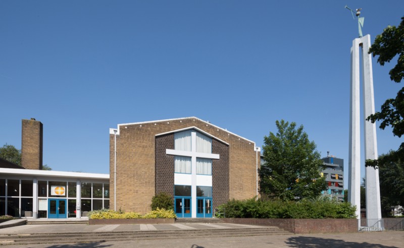 Gereformeerde Shalomkerk (voorheen Salvatorkerk), gebouwd 1955-1959 door architecten A. Verschoor en T. Bier in de naoorlogse uitbreidingswijk Bouwlust/Vrederust.