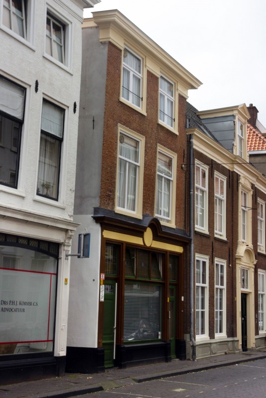Pand van oorsprong uit de 17de eeuw. Drie bouwlagen, twee vensterassen breed. In houten kroonlijst doorstotende vensters. Winkelpui laaste kwart 19de eeuw op natuurstenen plint, geprofileerde houten vensteromlijstingen en hoofdgestel. Bovenlichten winkelpui met glas in lood.