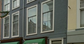 Houten winkelpui oorspronkelijk behorende bij sigarenmagazijn J. van Thuyl.Denneweg 19-19a