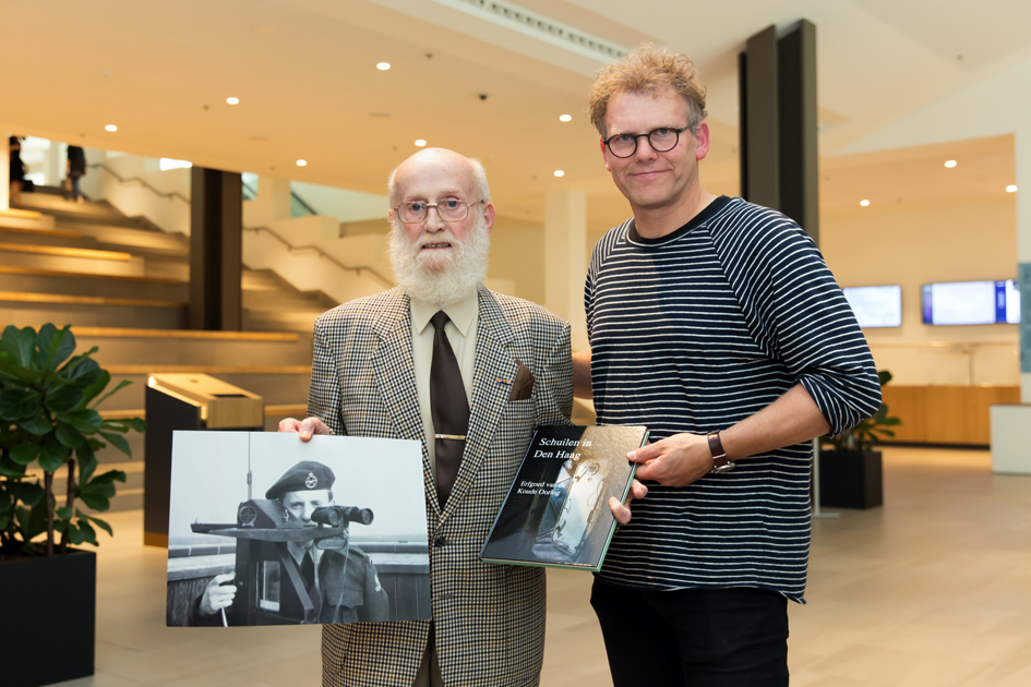 Wethouder Joris Wijsmuller overhandigde het eerste exemplaar aan Koos van den Berg, voormalig Luchtwachter.