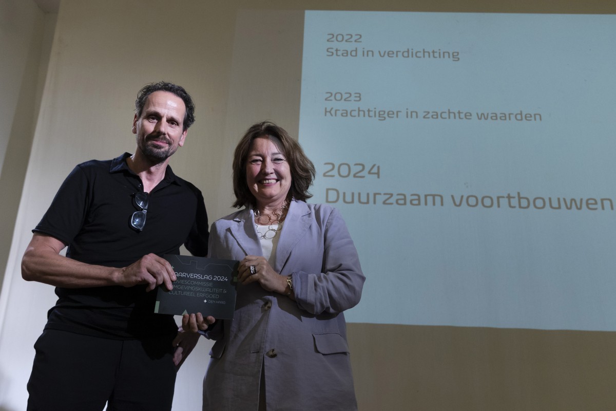 Vrijdag 20 juni 2025 presenteerde voorzitter Marc Reniers het eerste jaarverslag van de Adviescommissie omgevingskwaliteit en cultureel erfgoed 2024 aan wethouder Saskia Bruines.